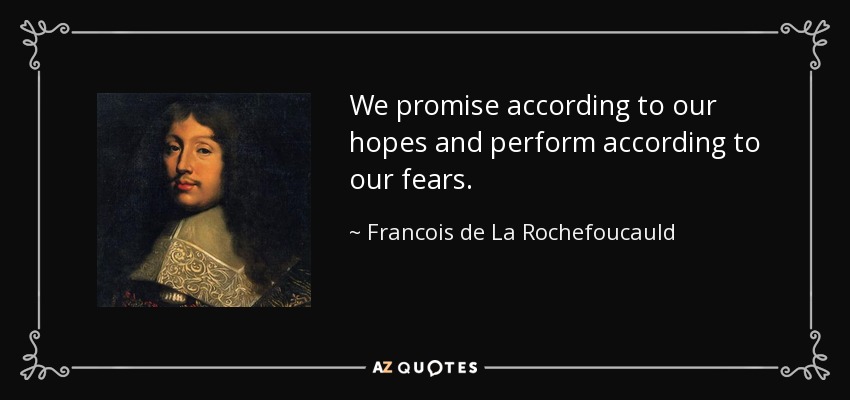 “We promise according to our hopes and perform according to our fears.” -La Rochefoucauld